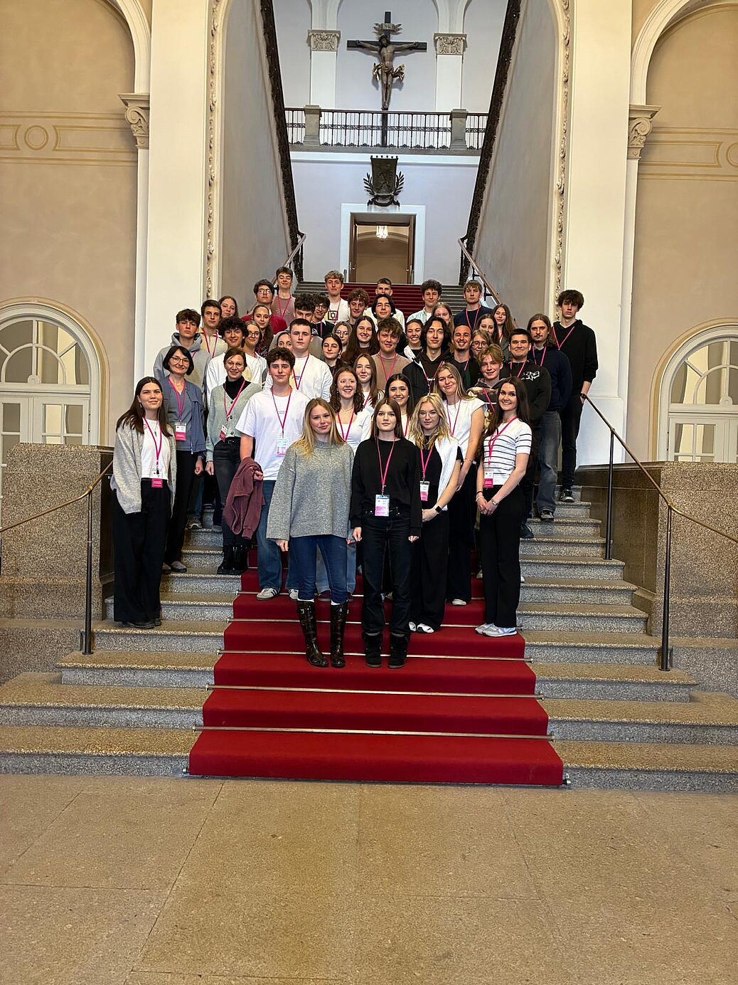 Ein besonderer Programmpunkt war der Besuch des Bayerischen Landtags. Im Gespräch mit dem Landtagsabgeordneten Maximilian Deisenhofer entstand eine offene und lebendige Diskussion, in der viele aktuelle Fragen zur Sprache kamen. So wollten die Schülerinnen und Schüler zum Beispiel wissen: „Warum sind die Spritpreise in Deutschland so viel teurer als in Österreich oder Tschechien?“ und „Wie viel wird KI im Landtag eigentlich schon genutzt?“ Fragen wie diese machten deutlich, wie aufmerksam die jungen Menschen politische Entwicklungen verfolgen. Nach dem Besuch im Maximilianeum ging es weiter in die Bayerische Staatskanzlei, wo die Gruppe weitere Einblicke in politische Abläufe auf Landesebene erhielt. Am Abend stand mit der Oper Macbeth im Münchner Nationaltheater noch ein eindrucksvoller kultureller Höhepunkt auf dem Programm.