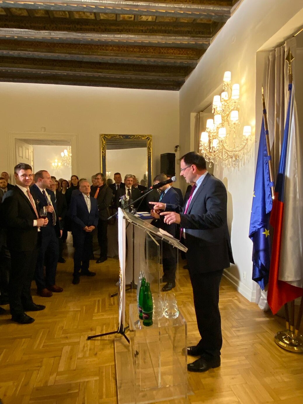 [Translate to Czech:] Europaminister Eric Beißwenger eröffnet den traditionellen Neujahrsempfang in der Bayerischen Repräsentanz in Prag.